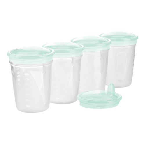 Nevyvařujte, myjte produkt v teplé vodě s čistícími prostředky pro děti, opakovaně oplachujte. Nepoužívejte jiné chemikálie. Kelímky jsou vyrobeny ze speciálního materiálu určeného pro styk s potravinami, který neobsahuje bisfenol A.