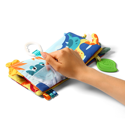 Měkká a barevná knížka je odpovědí na kognitivní potřeby Vašeho děťátka. Hračka bude provázet Vašeho prcka během jeho raných vývojových stadií a bude stimulovat růst jeho zrakových, sluchových a motorických koordinačních schopností. Pozorování zářivých barev a výrazných tvarů přinese miminku spoustu radosti a zapojí všechny jeho smysly. Knížka byla vyrobena z nejlepších bezpečných materiálů.