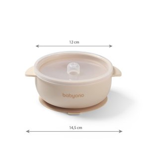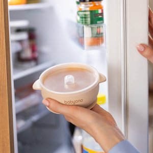 Silikonová miska s přísavkou a víčkem – pohodlné, bezpečné a čisté pojídání. Začínáte svému miminku zavádět nové chutě? Silikonová miska s přísavkou a víčkem je ideální při přechodu na tuhou stravu i při učení samostatného jídla. Vhodná k podávání polévek, těstovin, zeleniny, ovoce, jogurtů či kaší. Silná přísavka udrží misku pevně na stole, i když se vaše zvědavé dítě pokusí ji převrhnout. Zaoblené okraje usnadňují nabírání jídla a víčko udrží pokrm teplý a čerstvý. Protiskluzové rukojeti zaručí bezpečné přenášení misky, i když je plná. Miska je vyrobena z odolného, netoxického silikonu bez BPA, vhodná do mikrovlnné trouby i myčky nádobí.