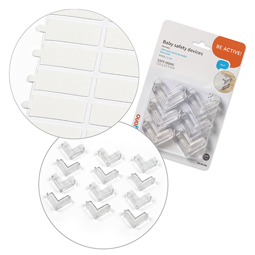 Ochrana rohů ve tvaru „L“ pomáhá chránit vaše dítě před bolestivými poraněními způsobenými ostrými hranami nábytku a jiného vybavení domácnosti. Umožňuje bezstarostné hraní a bezpečný prostor pro růst. Ochranu rohů lze připevnit na jakýkoli hladký a důkladně očištěný povrch – v závislosti na tloušťce i na obě strany rohu. Silná oboustranná páska 3M umožňuje rychlou a snadnou instalaci. Transparentní design se snadno přizpůsobí různým barvám a stylům nábytku ve vaší domácnosti.