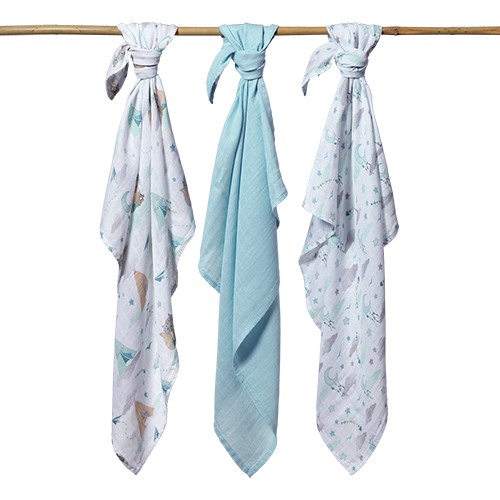 BABYONO Pleny bambusové 3 ks Blue, 70x70 cm