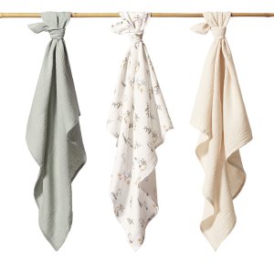 • Savé: Mačkané mušelínové pleny jsou vysoce savé. Můžete je používat jako ručník po koupání nebo jako bryndák na krmení, pokud má vaše dítě tendenci ublinkávat. Pokožka vašeho dítěte bude suchá a jeho oblečení čisté.