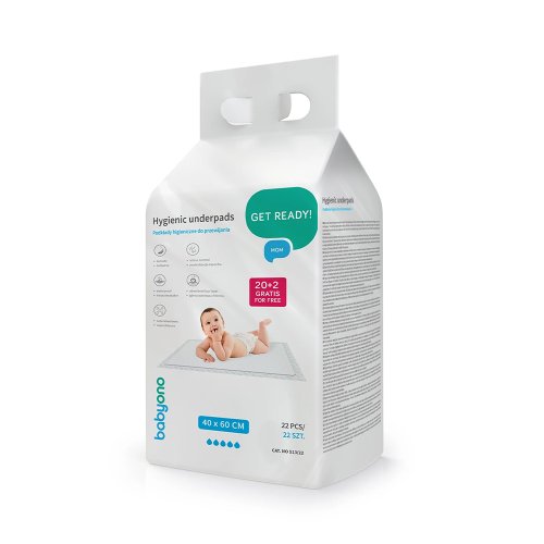 Jednorázové přebalovací podložky jsou velkou pomocí při přebalování dítěte. Mohou se také použít pro maminky jako podložky v poporodním období. Mimořádné absorpční vlastnosti pomáhají zajistit komfort a hygienu. Vnější plastové obložení chrání před znečištěním, zatímco samolepící pásky udržují polštářky na svém místě. Superabsorpční materiál uvnitř podložky váže vlhkost rychle, neutralizuje jakékoli nepříjemné pachy.