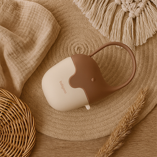 Tato nádobka ve tvaru slona slouží k přenášení a uložení dudlíku. Je nezbytná pro každou procházku a chrání dudlík před ztrátou a znečištěním. Díky flexibilní rukojeti lze nádobku zavěsit na rukojeť kočárku, autosedačky nebo tašky na kočárek. Neobsahuje BPA.