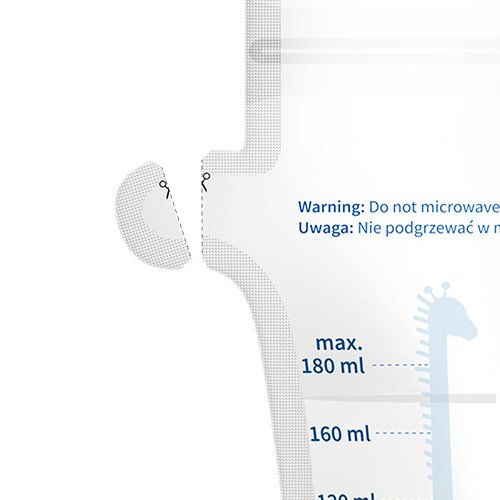 Optimální kapacita Sáček uskladní najednou velké množství mléka - až 180 ml. Přesné měřítko slouží k odměření vhodné dávky mateřského mléka.