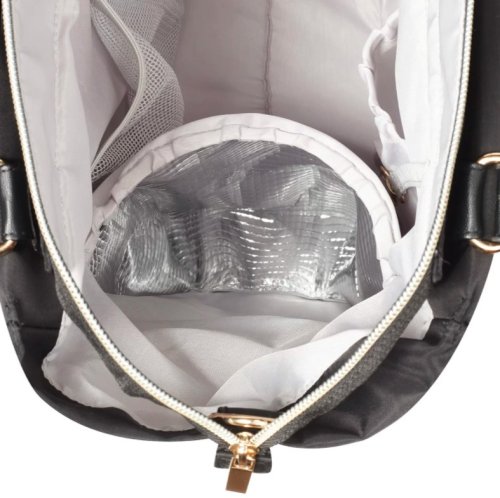 Taška je opatřena šňůrkou, která vám umožní snadno najít klíče. Najdete zde i kapsu na zip s rychlým přístupem, která pojme telefon. Vnější boční kapsy slouží na praktické uložení lahví dětské výživy a nápojů. Funkce tepelné izolace kapsy umístěné uvnitř tašky vám však umožňuje udržet požadovanou teplotu jídla.