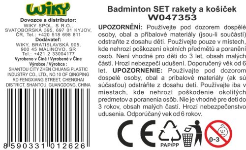 Badminton set rakety a košíček. Obsah balení - 2 rakety, 1x košíček. Rozměry raket 43,5x22,5 cm.