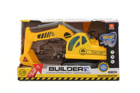 Bagr na baterie o rozměru cca 24 x 12 cm. Rozměry balení cca 25 x 10 x 14 cm. Napájení na 3x baterii AG13 (je součástí balení). Bagr vydává zvuky a svítí. Věk 3+