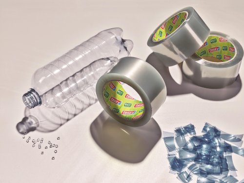 • Recyklovaná PET obalová páska založená na 70% obsahu recyklovaného PET v podložce a vodou ředitelném akrylátovém lepidle