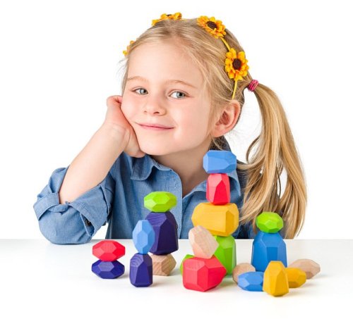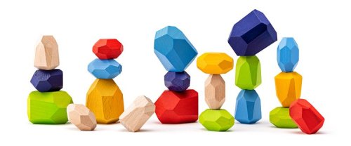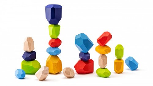 Motorická balanční hračka ze dřeva. Děti mají za úkol postavit na sebe co nejvíce dřevěných kamenů tak, aby věž z nich nespadla. Kameny jsou speciálně zpracované tak, aby plošky, na kterých stojí, byly stabilní pouze v konkrétních polohách pro konkrétní plošky dalších kamenů. Proto je třeba využít nejen motorické, ale i logické schopnosti a kombinatoriku . | Věk: 3+