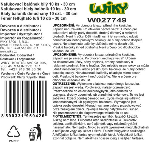 Balónek nafukovací o velikosti 30 cm - Bílý