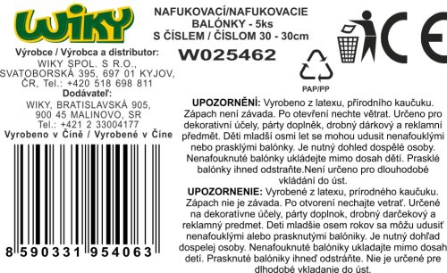 Balónek nafukovací 30 cm - sada 5ks, s číslem 30