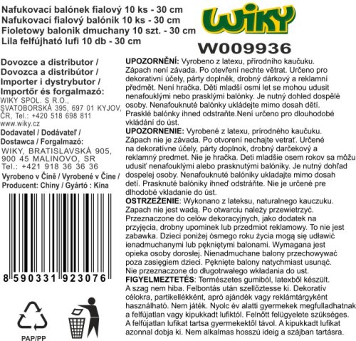 Balónek nafukovací 30cm - sada 10ks, fialový