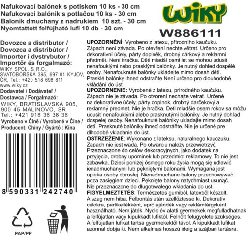 Balónek nafukovací 30cm - sada 10ks, potisk