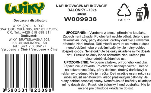 Balónek nafukovací 30cm - sada 10ks, transparentní