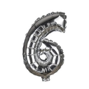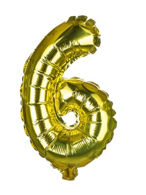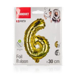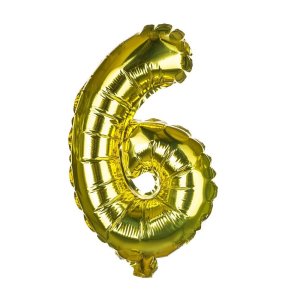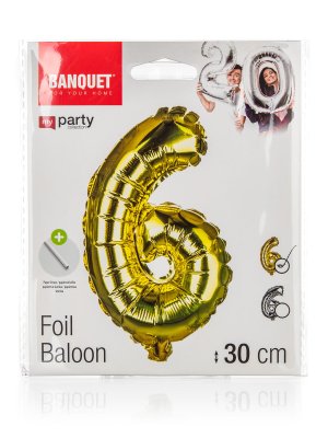 Balónek nafukovací fóliový číslo 6, je vysoký cca 30 cm, barevný mix: zlatá a stříbrná barva. Součástí výrobku je papírové brčko pro nafouknutí balónku a šňůrka pro zavěšení. Výrobek využijete na oslavě, zahradní párty, pikniku apod.