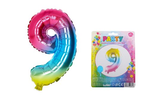 Duhový nafukovací balónek ve tvaru čísla 9 je vhodný jako doplněk na narozeninovou párty!