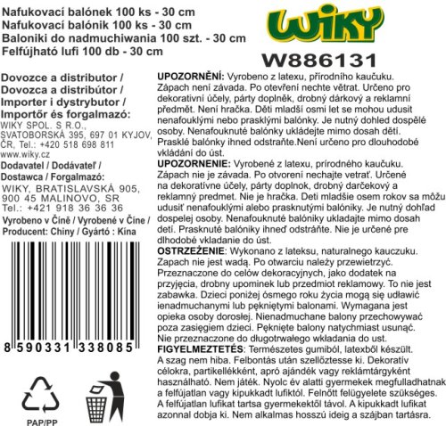 Balení 100 ks Nafukovací balonek - modrý s Wiky potiskem 30 cm