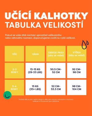 Nepoužívejte je dříve než je dítě k přechodu na nočník připraveno. Učící plenkové kalhotky sice obsahují absopční vrstvu, která zachytí menší množství moči, ale nenahrazují plnohodnotně vícevrstvou plenku s kalhotkami. Jsou určeny pro dítě, které již přechází na nočník a občas se mu přihodí nepříjemná příhoda. V učících plenkových kalhotkách vlhkost ihned ucítí, může si ji uvědomit a posadit se na nočník. Učící plenkové kalhotky nedávejte dítěti na noc či na spaní a pokud nemáte jinou možnost vložte do nich ještě další vícevrstvou plenku Bambino Mio, která doplní absorpční kapacitu. Před prvním použitím učící plenkové kalhotky minimálně dvakrát předeperte.