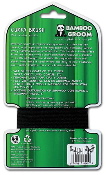 Vyrobeno z bambusu pro mokrou nebo suchou srst jakéhokoliv typu. Kartáč má různá využití. Při použití na suchou srst odstraňuje volné vlasy a nečistoty a během koupání nabízí příjemnou masáž, která snižuje úzkost. Kartáč je k dispozici v jedné velikosti s elastickou bandáží a ergonomickým tvarem pro pohodlné používání.