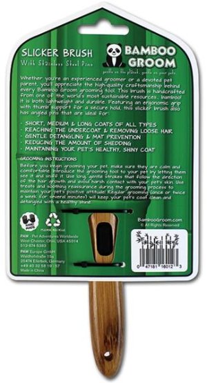 Kartáč se šikmými špendlíky určený pro všechny typy srstí. Jemně odstraňuje volné vlasy. Pravidelné používání tohoto kartáče snižuje vypadávání vlasů a výsledkem je hladká lesklá srst. Výrobek má gumovou opěrku, konstrukci z bambusu a ergonomickou rukojeť.