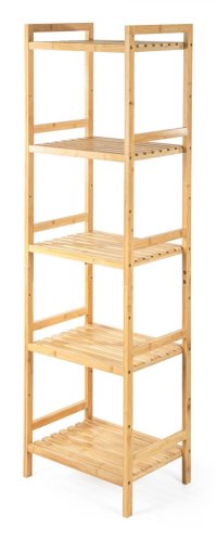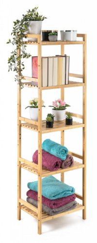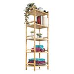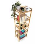 Bambusový regál s pěti policemi dodává interiéru příjemný přírodní dojem, pocit lehkosti a přirozenosti, zatímco jeho pevnost a dlouhá životnost zajišťují stabilitu a trvanlivost.