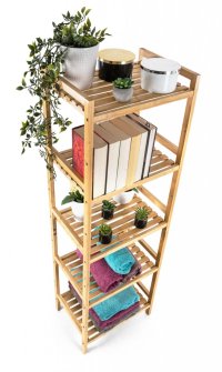 Bambus je překvapivě lehký, takže s celým stojanem s policemi můžete snadno manipulovat. Zároveň je ale dostatečně pevný, takže unese i větší zátěž. Jednou z výborných vlastností bambusového dřeva je navíc jeho velká odolnost vůči vlhkosti a přirozená odolnost vůči bakteriím a plísním, takže se nemusíte obávat jeho umístění v koupelně nebo prádelně.