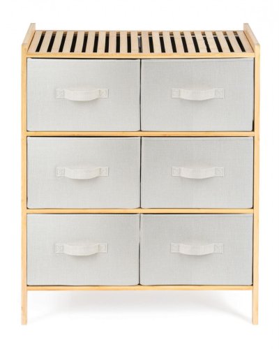 Praktický stojan se 6 výsuvnými textilními košíky ušetří spoustu místa a uložíte do něj vše, co potřebujete. Potřeby na praní nebo kosmetiku, oblečení i dětské hračky. Každý košík má objem 20 litrů, šířka je 31 cm, výška 19 cm a hloubka 35 cm. Celý stojan má na výšku jen 78,5 cm.