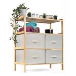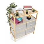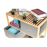 Bambusový regál s výsuvnými látkovými zásuvkami dodává interiéru příjemný přírodní dojem, pocit lehkosti a přirozenosti, zatímco jeho pevnost a dlouhá životnost zajišťují stabilitu a trvanlivost.