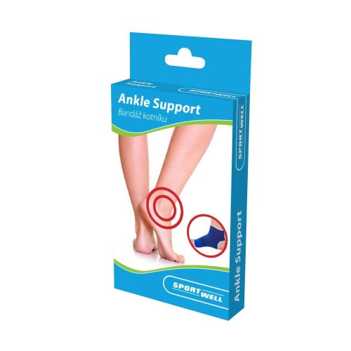 Bandáž kotníku SPORTWELL zmenšuje bolest spojenou s přetěžováním kloubů. Doporučuje se používat jako preventivní prostředek, chrání a zmírňuje následky úrazů. Je vhodný pro osoby, které provozují dynamické sporty. Bandáž je vyrobena z pružného jednosměrně elastického materiálu, který není nijak silný. Bandáž lze jednoduše schovat pod oblečení. Dodáváno ve velikostech S / M / L.