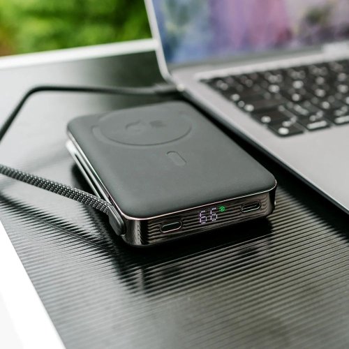 Nabíjejte až tři zařízení najednou Powerbank vám umožní nabíjení tří zařízení současně. Jedno za pomocí bezdrátové nabíjecí plochy Qi2, druhé pak pomocí integrovaného USB-C kabelu a třetí přes USB-C port ke kterému jednoduše připojíte kabel.