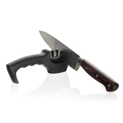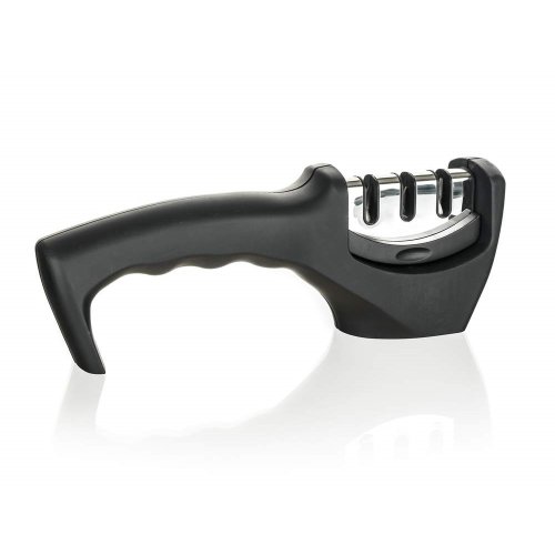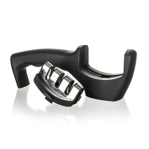 Brousek na nože ALIVIO 3v1 je určen pro broušení klasických ocelových kuchyňských nožů. Je vyroben z ABS plastu se soft touch povrchovou úpravou a protiskluzovou základnou pro snadnou a bezpečnou manipulaci. Brousek je určen pro praváky i leváky a má 3 brusné kameny. Diamantový kámen slouží pro opravy poškozených čepelí a jejich rovnání před broušením. Wolframový kámen zajistí zostření čepele a obnovení ostří do optimálního tvaru. Třetí kámen je keramický a je určený pro leštění čepele a vyrovnání povrchových nerovností.