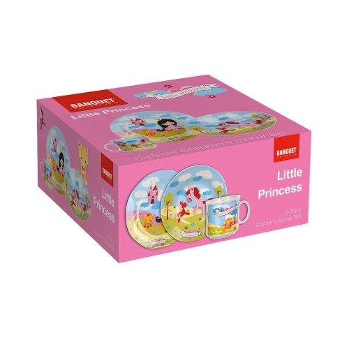 Dětská 3dílná sada LITTLE PRINCESS je složena z hlubokého a mělkého talíře o průměru 20 cm, hrnečku o objemu 210 ml. Sada je vyrobena z keramiky s dekorem princezny.
