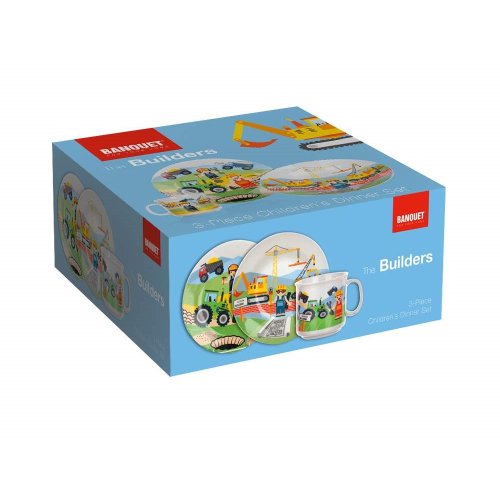 Dětská 3dílná sada THE BUILDERS je složena z hlubokého a mělkého talíře o průměru 20 cm, hrnečku o objemu 210 ml. Sada je vyrobena z keramiky s dekorem stavitelé.