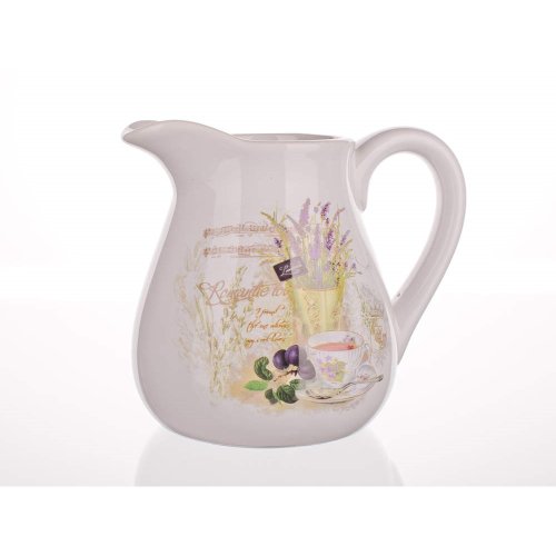 Džbánek 880 ml LAVENDER, materiál - keramika, bílá glazura s dekorem levandule, výška džbánku 14,5 cm.
