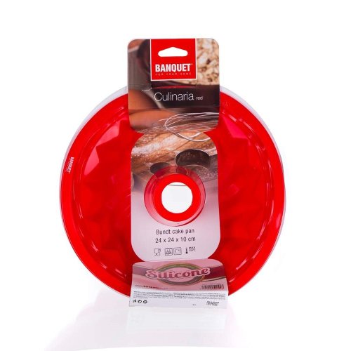 Silikonová bábovka CULINARIA Red je odolná vysokým teplotám (do 230 st. C), lze jí používat do elektrické i mikrovlnné trouby. Snadno se udržuje a lze mýt v myčce na nádobí. Rozměry: průměr 24 cm a výška 10 cm. Silikon je velmi populární materiál, který pro své jedinečné vlastnosti našel uplatnění i v kuchyni. Vyrábí se z něj různé druhy forem na pečení, vály a válečky na těsto, stěrky, mašlovačky, různé druhy kuchyňského náčiní a mnohé další výrobky.