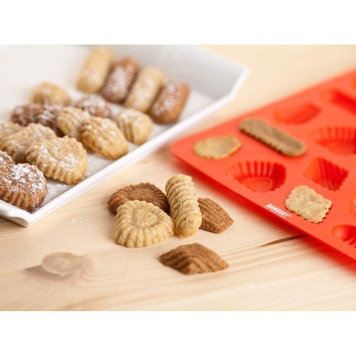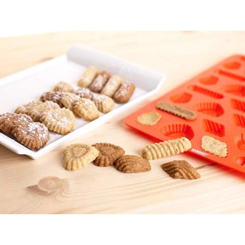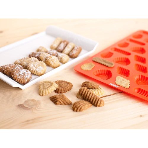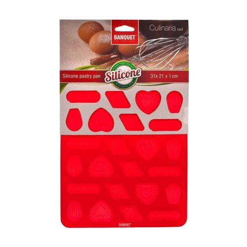 Silikonová forma na cukroví CULINARIA Red, rozměry: 31x 21 x 1 cm, forma je odolná vysokým teplotám (do 230 st.C), lze jí používat do elektrické i mikrovlnné trouby, neváže chutě ani pachy pokrmů, snadno se udržuje, lze mýt v myčce na nádobí. Silikon je velmi populární materiál, který pro své jedinečné vlastnosti našel své uplatnění i v kuchyni. Vyrábí se z něj různé druhy forem na pečení, vály a válečky na těsto, stěrky, mašlovačky, různé druhy kuchyňské náčiní a mnohé další výrobky.