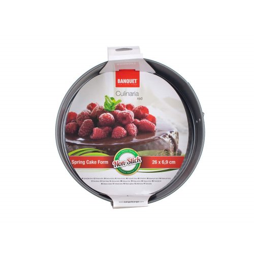 Dortová forma s plastovým víkem, průměr formy 26 cm, výška 6,9 cm, uhlíková ocel s nepřilnavým povrchem, tloušťka materiálu 0,4 mm, boční otevírací systém. Nepřilnavý povrch XYNFLON je vyroben na bázi PTFE (polytetrafluorethylenu), je vysoce odolný, má prvotřídní antiadhézní vlastnosti a snadno se udržuje.
