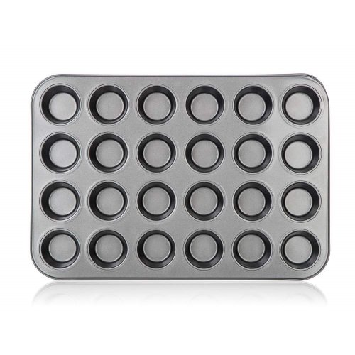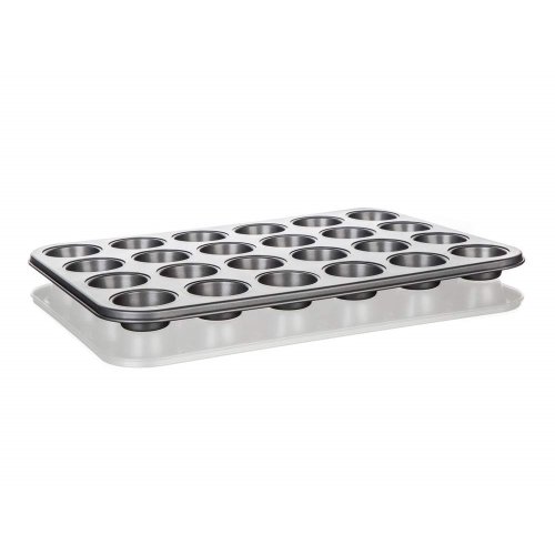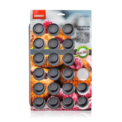 Forma na 24 ks vdolečků 37,8 x 26 cm CULINARIA je vyroben z uhlíkové oceli s nepřilnavým povrchem (Xynflon). Vnější i vnitřní povrch je ve stříbrnošedém provedení. Rozměry formy: tloušťka 0,4 mm, výška 2 cm. Nepřilnavý povrch XYNFLON je vyroben na bázi PTFE (polytetrafluorethylen), je vysoce odolný, má prvotřídní antiadhezní vlastnosti a snadno se udržuje.