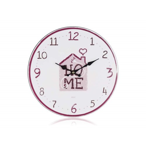 Nástěnné kulaté hodiny HOME s celoplošným dekorem o průměru 30 cm. Hodinový strojek je napájen jedním kusem baterie AA (není součastí balení). Produkt je ideální dekorací do vašeho bytu nebo stylové kuchyně. V nabídce máme i další výrobky ve stejné kolekci HOME.
