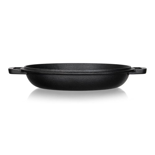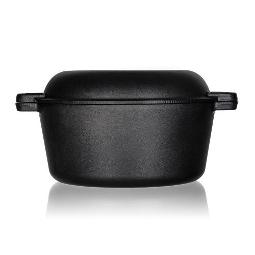 Hrnec litinový EXCELLENT na chleba, kulatý s víkem o objemu 4,8 l + víko 1,8 l o rozměru 32 x 26 x 16 cm v černé barvě. Litinový hrnec je ideální nejen pro pečení chleba. Litina zajistí rovnoměrné propečení čímž dodá chlebu nezaměnitelnou zlatou křupavou kůrku. Masivní materiál, který jakmile se nahřeje, vydrží dlouho a rovnoměrně rozvádí teplo, díky němuž se pokrm v litinovém pekáči upeče rovnoměrně, za kratší dobu a úsporněji. Před prvním použitím naneste na povrch pekáče rostlinný olej a postupně jej začněte ohřívat v troubě (začněte na mírném ohni a pomalu zvyšujte teplotu). Zapečením oleje získá výrobek svoji nepřilnavost. Litinový hrnec je ideálním pomocníkem ve vaší kuchyni. Můžete v něm péct jakékoliv pečivo, buchty, pizzu, ale i zapékat brambory, zeleninu apod. Nebo můžete víko použít samostatně jako pánev ke smažení, nebo jako pekáček pro zapékání vašich oblíbených pokrmů.
