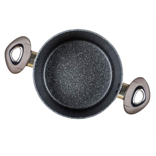Hliníkový litý kovaný hrnec se skleněnou poklicí METALLIC PLATINUM s nepřílnavým povrchem, 20 x 13,5 cm, vnější karbon metalický nástřik, tloušťka stěny 3 mm, plně indukční dno, soft-touch rukojeť a nerezový knob. Nepřilnavý povrch je velmi tvrdý a odolný proti poškrábání. Hrnec je odolný proti nárazu.