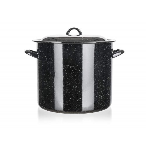 Smaltovaný hrnec s poklicí 7,5 l, rozměry: průměr 24 cm, výška 16,5 cm. Hrnec lze používat na všechny typy varných desek mimo indukce.