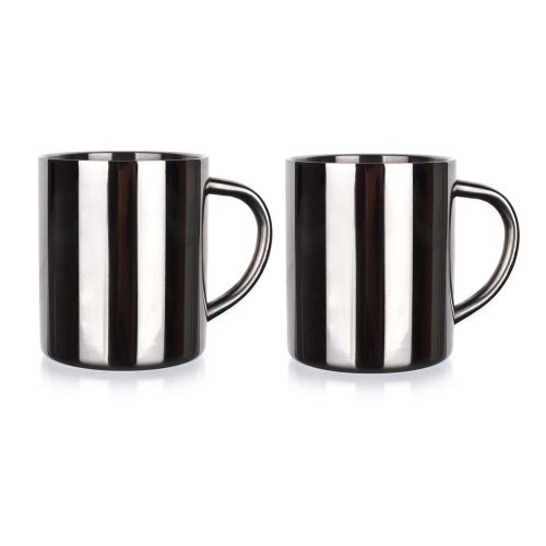 Sada dvou nerezových dvouplášťových hrnků 300 ml, výška hrnků 9 cm, vnitřní průměr 6,9 cm, vnější průměr 7,3 cm, hmotnost 130 g, objem hrnku po okraj 300 ml.