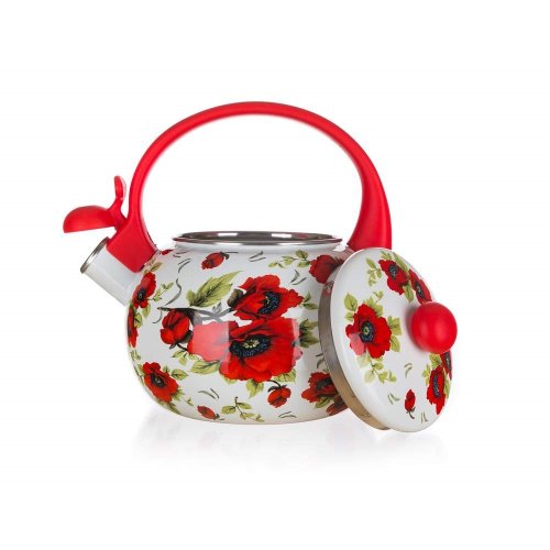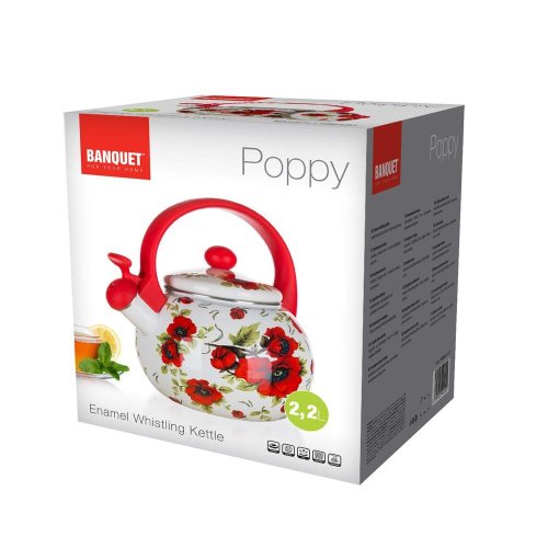Smaltovaná konvice pískací 2,2 l POPPY je vyrobena z ocelového plátu s 2vrstvým smaltovaným nástřikem a dekorem ve stylu POPPY. Má plastové držadlo barevně laděné do designu konvice, snímatelnou píšťalu a dno opatřeno piktogramy o použití konvice.