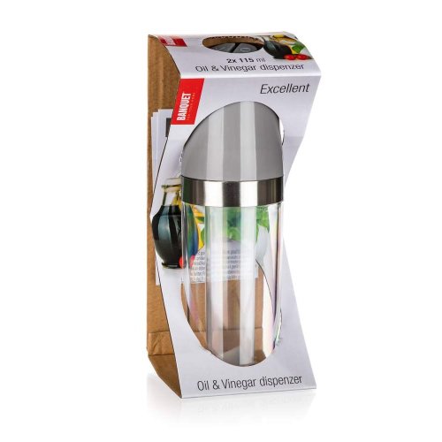 Dávkovač na olej a ocet EXCELLENT je transparentní dělená nádobka o objemu 2 x 115 ml, výška 19,5 cm. Materiál: plast.