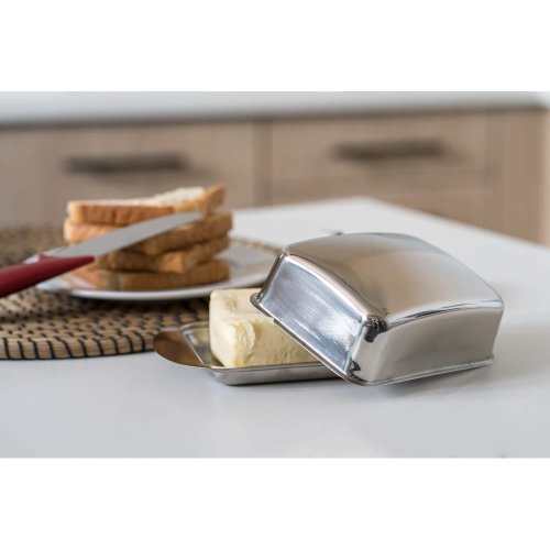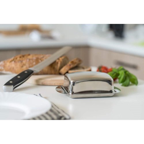 Máslenka nerezová EXCELLENT o rozměru 17 x 10,6 x 5,5 cm, je užitečná pomůcka při skladování rozbaleného másla.