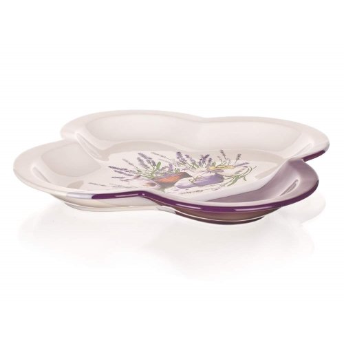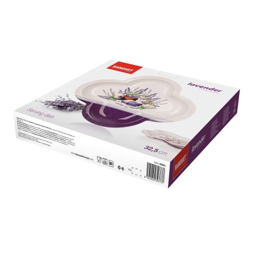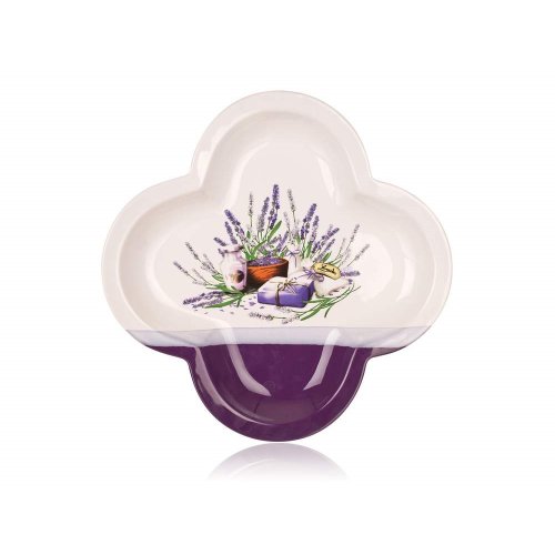 Servírovací mísa čtyřlístek 32 cm LAVENDER, materiál - keramika, fialovo-bílá glazura s dekorem levandule. Mísu lze mýt v myčce na nádobí.