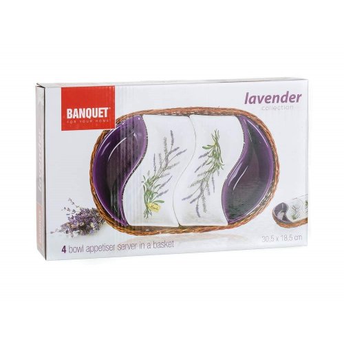 Mísa v košíku LAVENDER 30,5 cm, 4 díly v proutěném košíku 30,5 cm obsahuje: 4x miska a 1x proutěný košík. Jedná se o oblíbenou kolekci keramiky s dekorem levandule, kterou můžete doplnit ze širokého sortimentu.