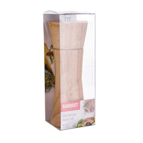 Mechanický mlýnek z gumovníkového dřeva v moderním kónickém tvaru má kvalitní keramický mlecí mechanismus, otáčením koření snadno namelete. Rozměr: výška 15,3 cm, průměr 5,8 cm.